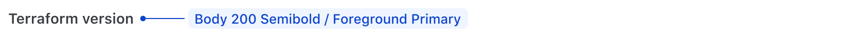 The title should always use the same styling of Body 200 Semibold with Foreground / Primary, regardless of the orientation or value style.